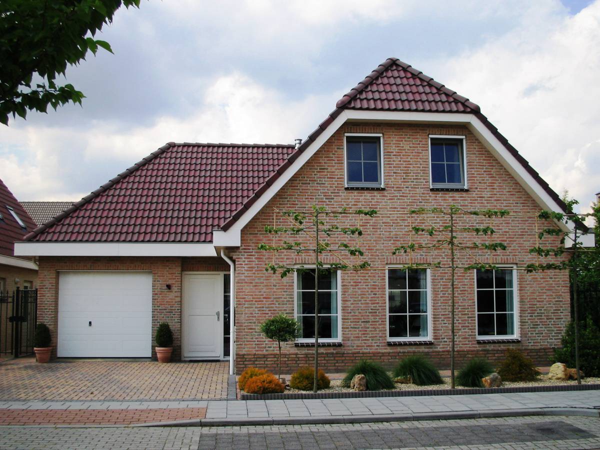 Deze t-kapwoning heeft als extra component de wolfseinden op het dak. De woning staat in Best.